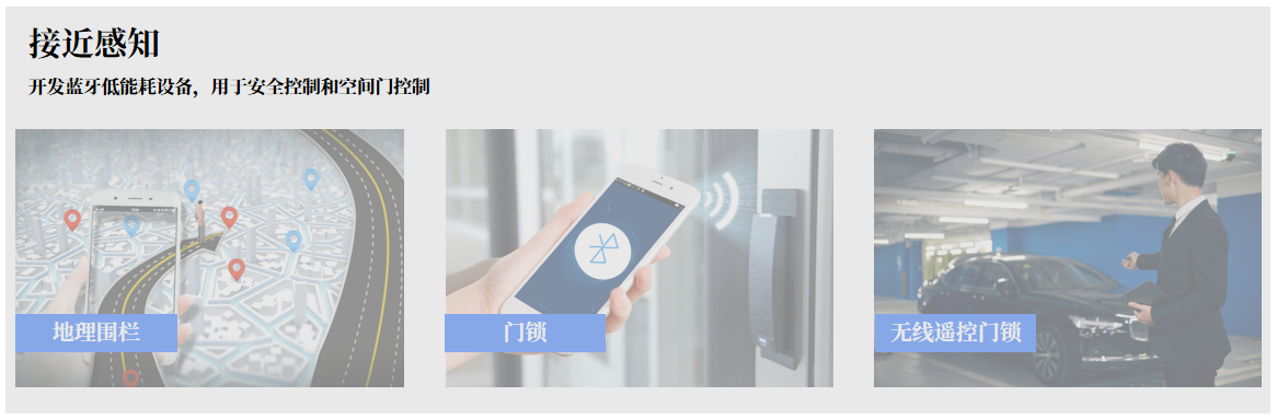 例如:汽车和房屋的无钥匙进入以及基于地理围栏的安全策略,在用户接近时,为获得正确授权的用户开门;如果用户在敏感区域停留太长时间,则会发出警报。