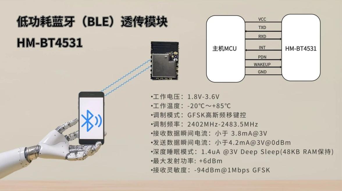 例如,哈哈体育微自主研发的HM-BT4531就是一款通过BQB认证,通过FCC/CE/IC/SRRC认证,采用智能干扰消除技术,可优化蓝牙连接稳定性,在复杂环境下实现更为可靠的无线连接的高性能BLE模块。